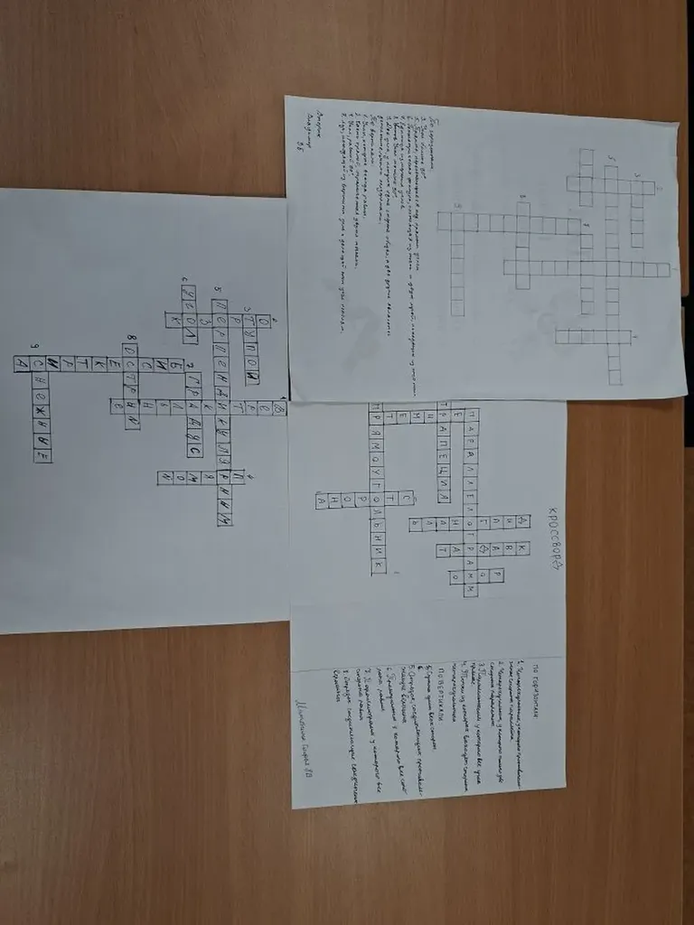 №2: Придумайте кроссворд по геометрии, используя ключевые понятия (например, параллельные линии, периметр, угол, биссектриса, гипотенуза и др.).